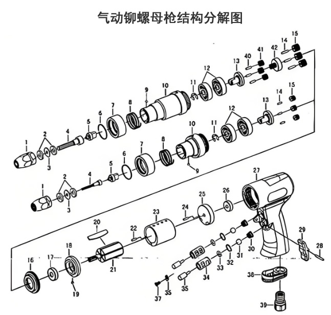 气动铆螺母枪结构分解图
